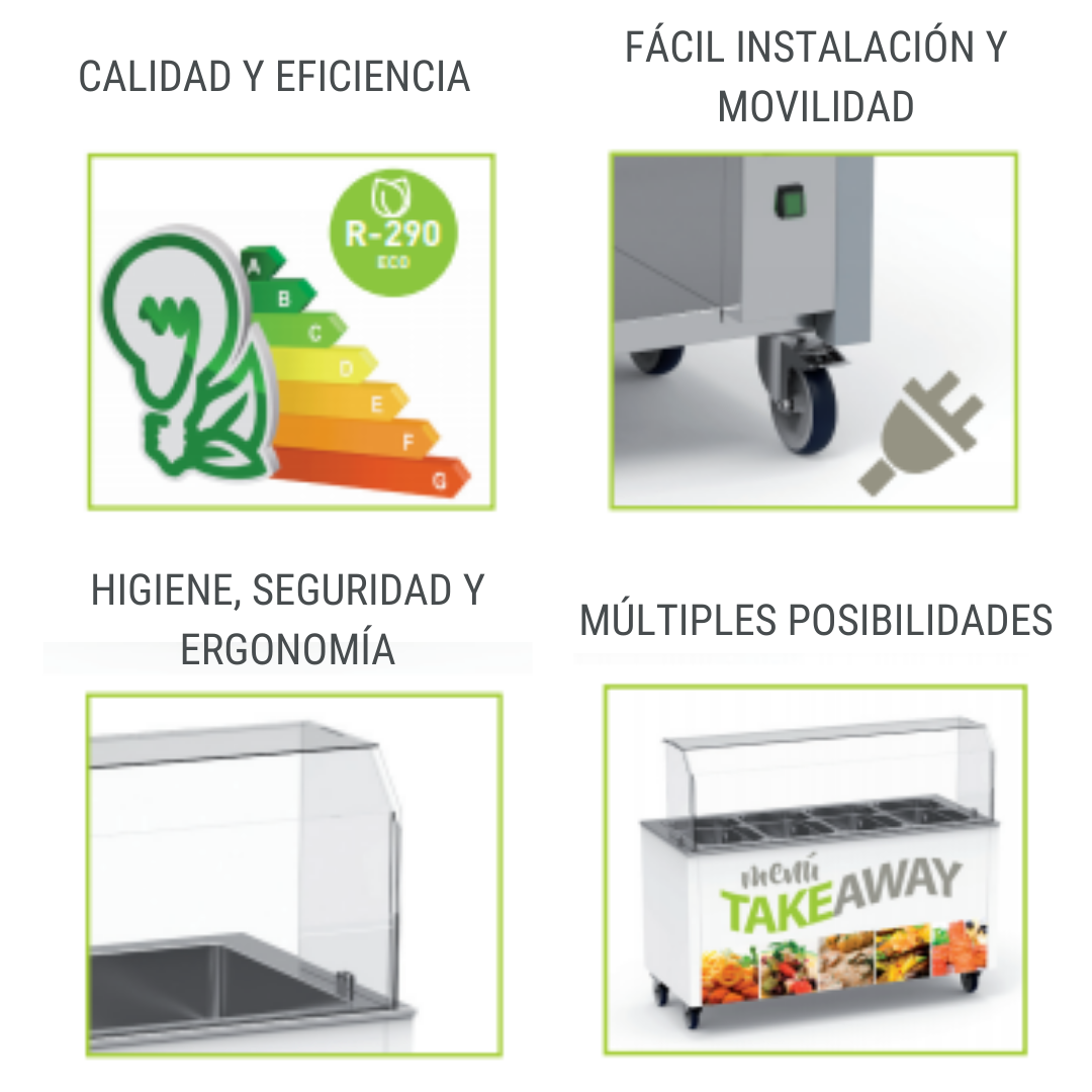 Hygiène, sécurité et ergonomie Le large dôme de méthacrylate offre une excellente sécurité et visualisation des aliments. Les coins sanitaires arrondis et la conception de tous ses éléments assurent une excellente hygiène et une facilité de propreté.