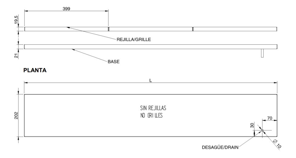 - 1202 x 202 x 21 (3 grilles)