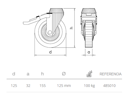 Roues fabriquées en acier inoxydable AISI-304 avec frein.