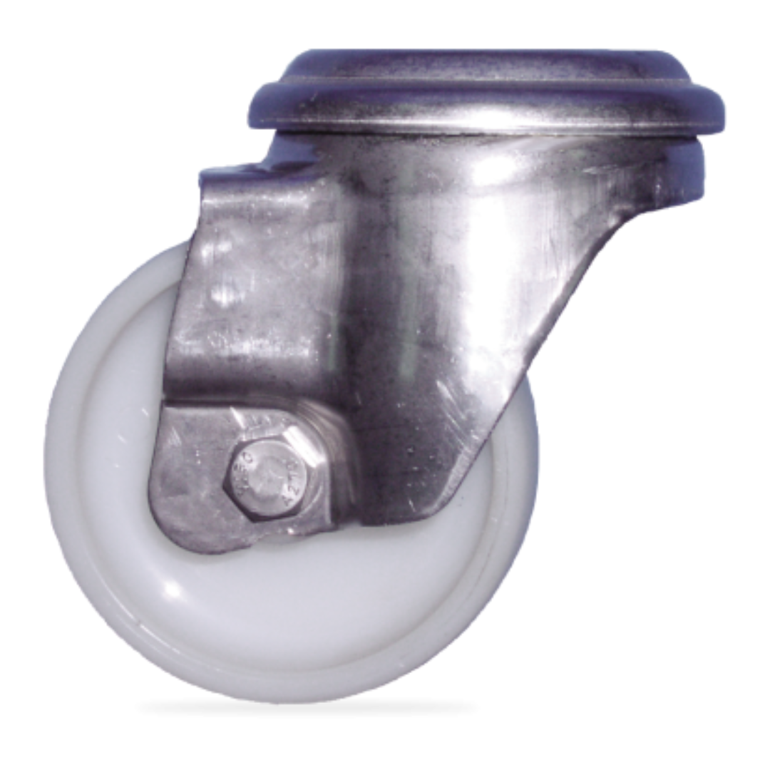 – Roue en acier inoxydable avec surface de roulement en nylon. Disponible en 2 mesures. Idéal pour attacher des meubles en acier inoxydable afin de faciliter leur transport.