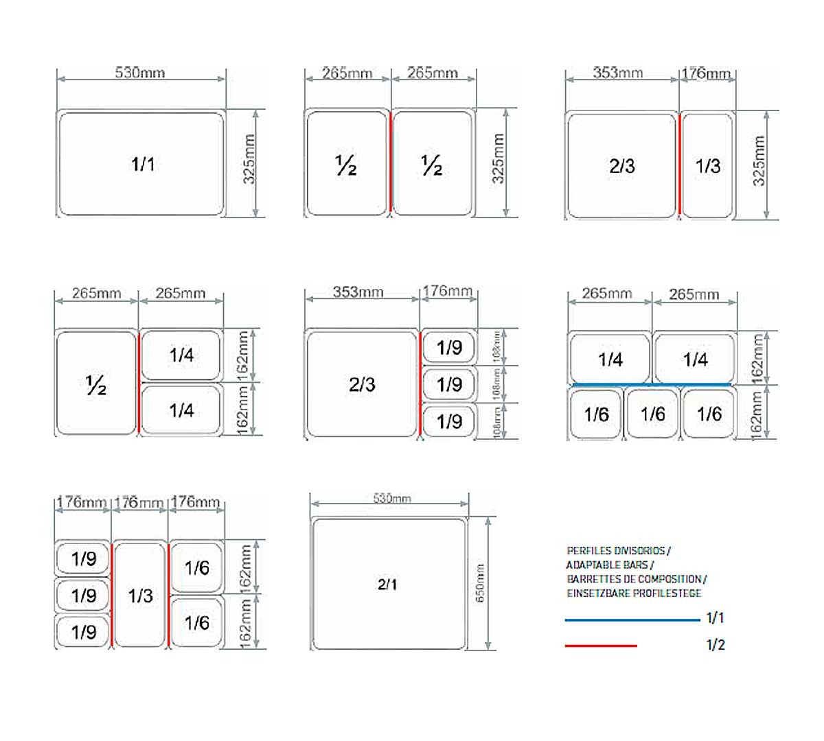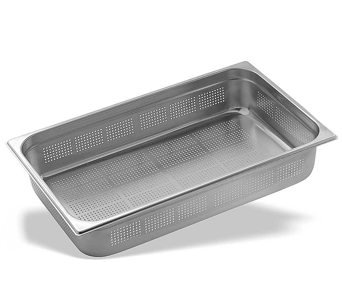 Le gastronorm GN 1/1 perforé est en acier inoxydable AISI 304 18/10. Il se caractérise par sa résistance et sa durabilité. Il est fabriqué selon la norme EN-631.2. Sa mesure est de 53 x 32,5 cm et la profondeur varie selon le modèle.