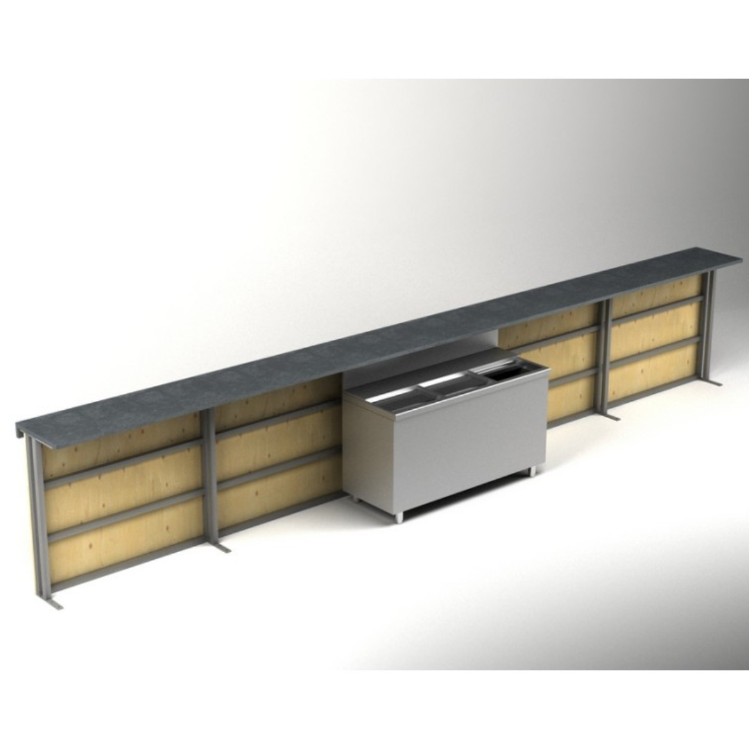 Structure de la barre de toute dimension comprise entre 2 000 et 6 000 mm. Hauteur standard 1 100 mm. Il est fourni avec des tacos et des vis pour l’installation. Lors de la commande de la longueur totale de la structure. Vous pouvez décorer l’avant avec du bois, de l’acier coupé, un acier inoxydable, du verre (photo) silestone (facultatif est valorisé à part)