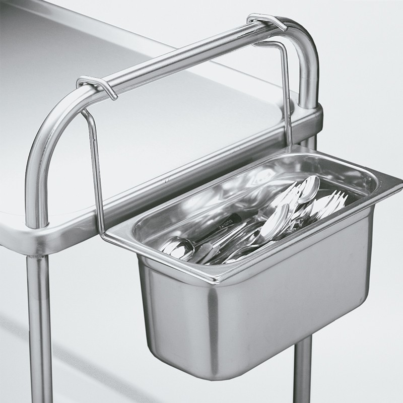 – Prise en charge en acier inoxydable pour les paniers de couverts.