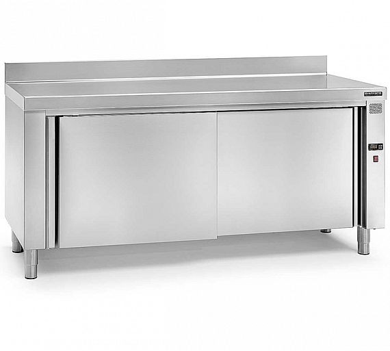 Tableau de table chaud 600, avec 600 mm de profondeur, en acier inoxydable. Tableau pour l’entretien chaud des plats avant le service.