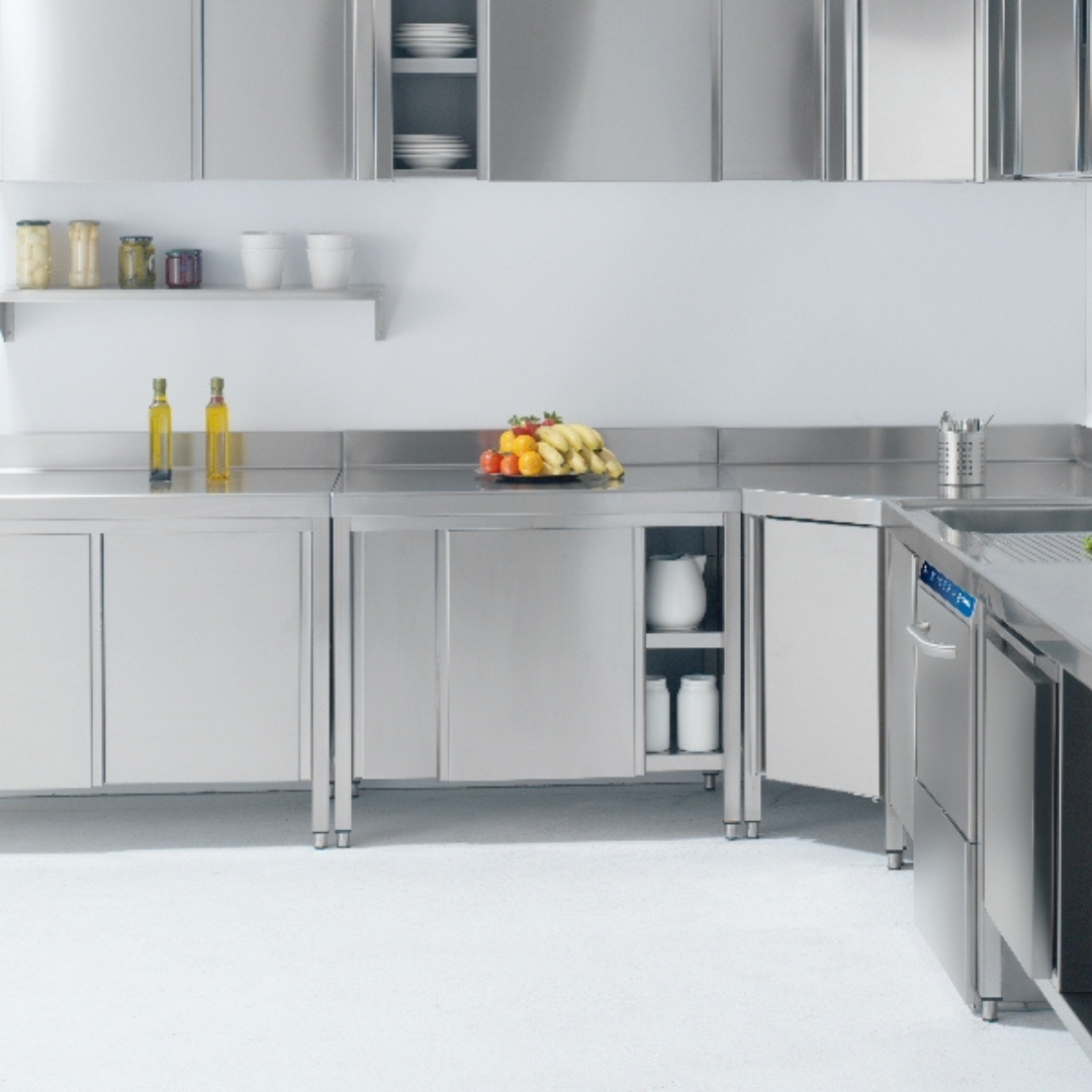 – table en acier inoxydable avec porte