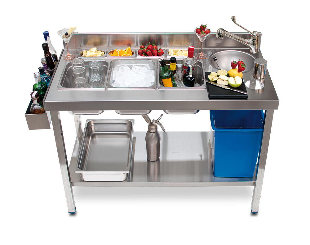 Table Barman fabriquée entièrement en acier inoxydable. COMPTENDRE DE 1,5 mm d’épaisseur, insensé et renforcé. 40 x 40 mm les jambes carrées. Les jambes postérieures sont déplacées pour s’adapter à la courbe sanitaire du sol. Structure entièrement soudée et résistante. Mesures: 1500 x 600 x 850 mm.