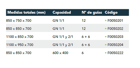 – Ces tables en acier inoxydable ont une capacité de: GN 1/1 et GN 2/1. (Non inclus)