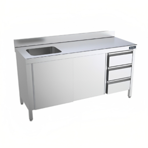 - Tableau Fabriqué entièrement en acier inoxydable AISI 304 18/10 avec les portes.