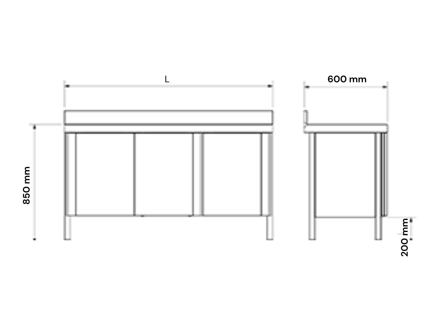 1000 x 600 x 850 mm, 1500 x 600 x 850 mm, 2000 x 600 x 850 mm, 1000 x 700 x 850 mm, 1500 x 700 x 850 mm, 2000 x 700 x 850 mm, 1000 x 500 x 850 mm, 1500 x 500 x 850 mm, 2000 x 500 x 850 mm