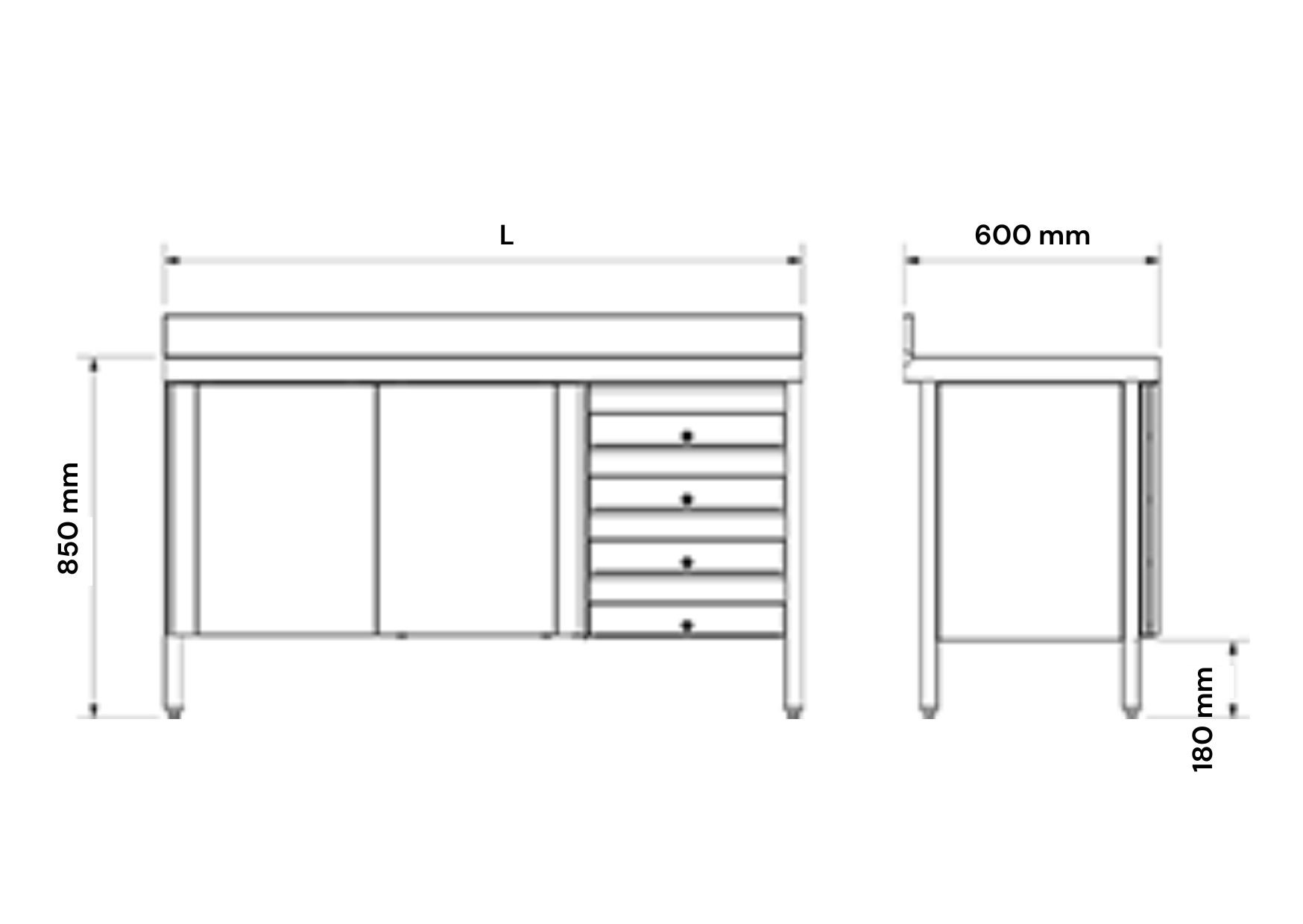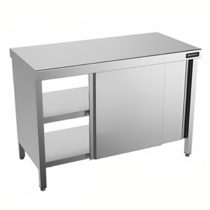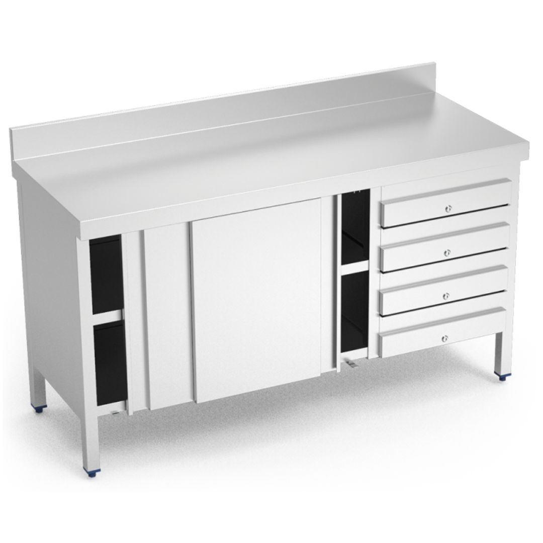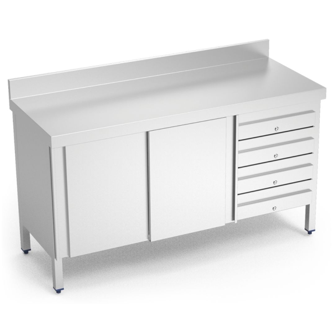 TABLE MURALE EN ACIER INOXYDABLE AVEC PORTES ET TIROIRS