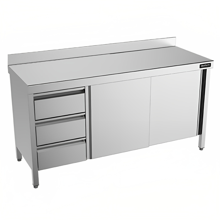 - Tableau Fabriqué entièrement en acier inoxydable AISI 304 18/10 avec portes.