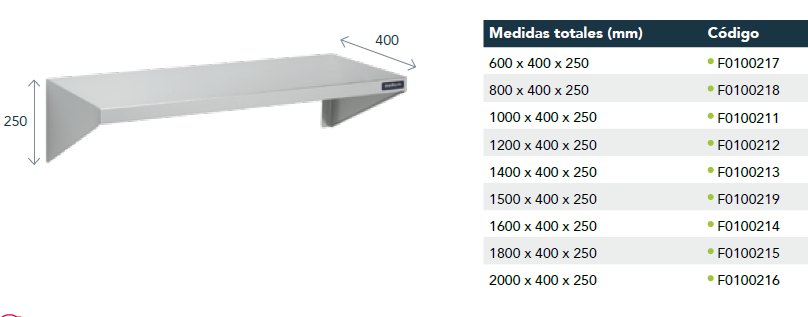 – étagère en acier inoxydable fabriqué en acier inoxydable AISI 304 18/10.