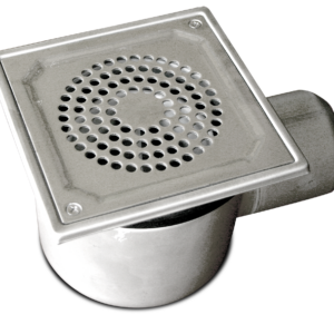 Sumidero siphonique avec panier de sortie horizontal fabriqué en acier inoxydable.