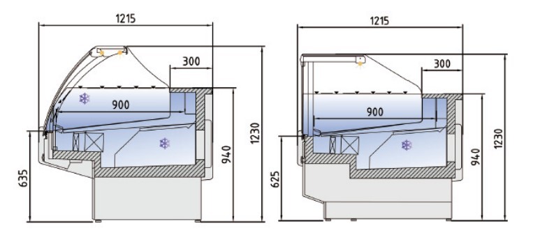 – Réserve réfrigérée avec des portes, creux 440 x 270 mm (sauf le modèle et modèle neutre sans réserve).