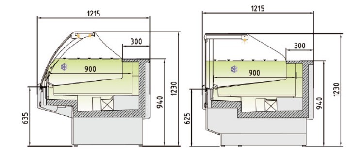 – Réserve réfrigérée avec des portes, creux 440 x 270 mm (sauf le modèle et modèle neutre sans réserve).