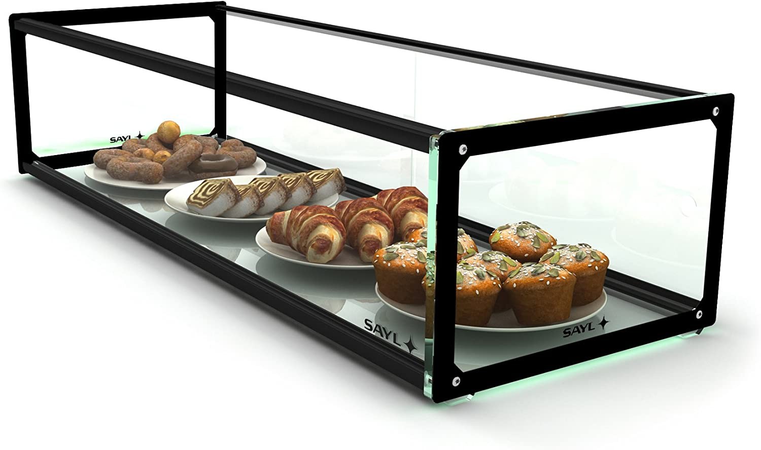 vitrine d’exposant en verre droit avec visibilité maximale.