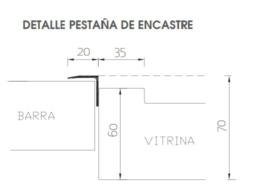 – La vitrine est intégrée dans la barre à l’aide d’un cadre en acier inoxydable de 20 mm.
