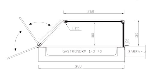 – Farrillas 450 x 280 mm ou gastronorm 1/3 h40 inclus.