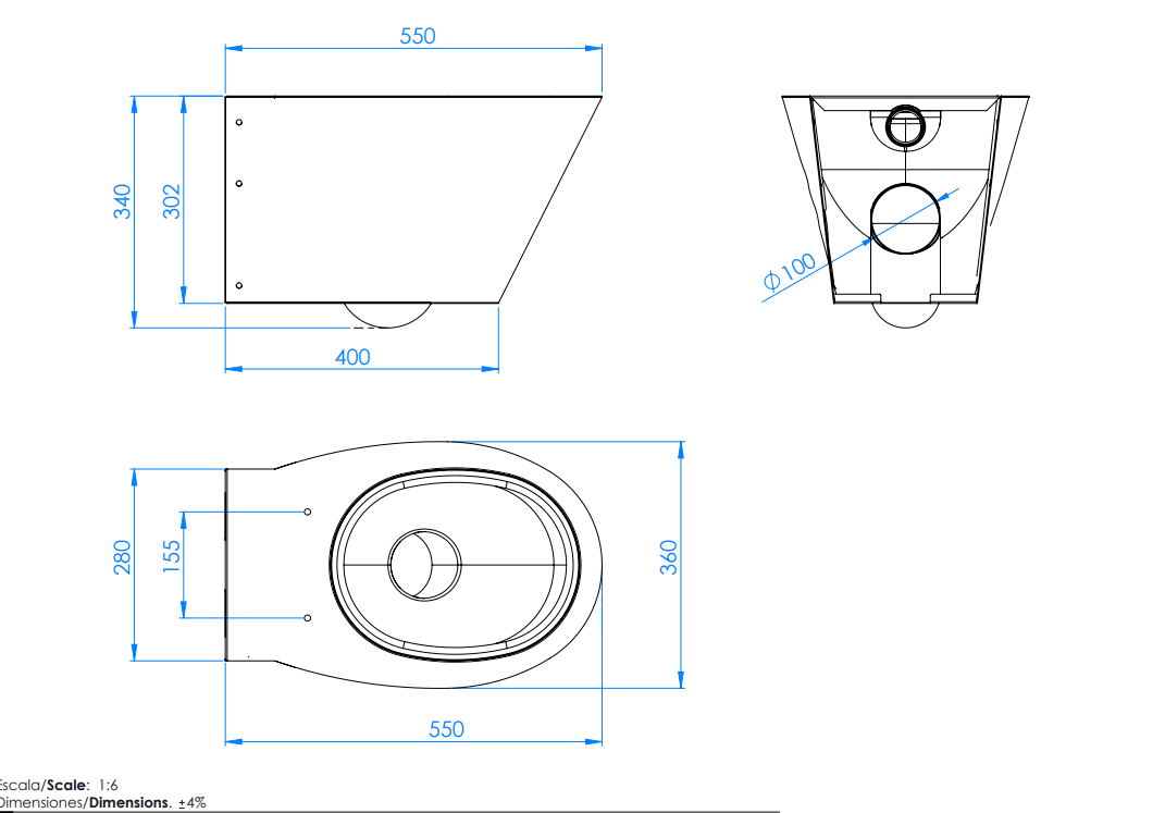 Fabriqué en acier inoxydable AISI-304 Bactériostatique 1,5 mm d’épaisseur, finition en satin.